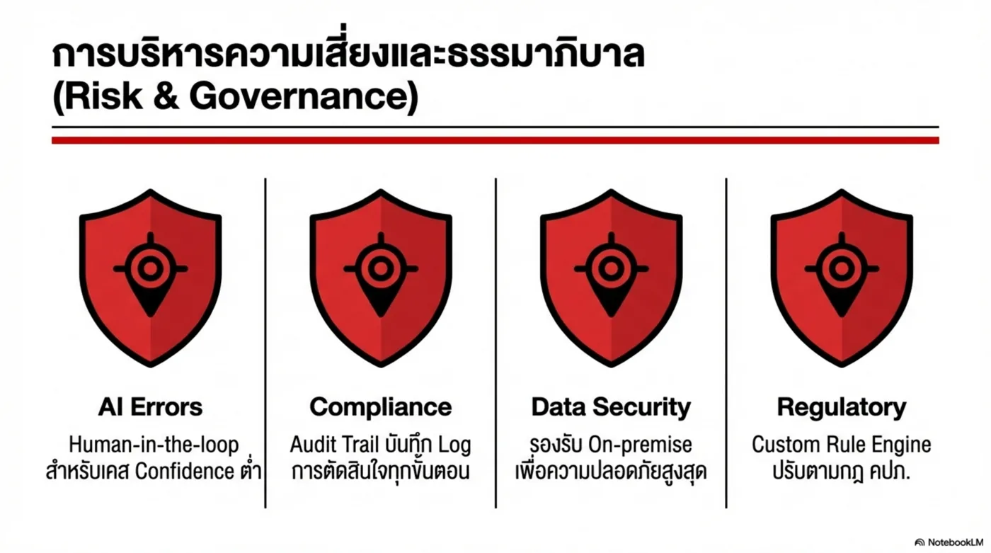 ทั้งหมดแชร์ “Core Engine + Governance” เดียวกัน ทำให้ขยาย use case ได้เร็วและคุมความเสี่ยงได้เหมือนกันทุกระบบ