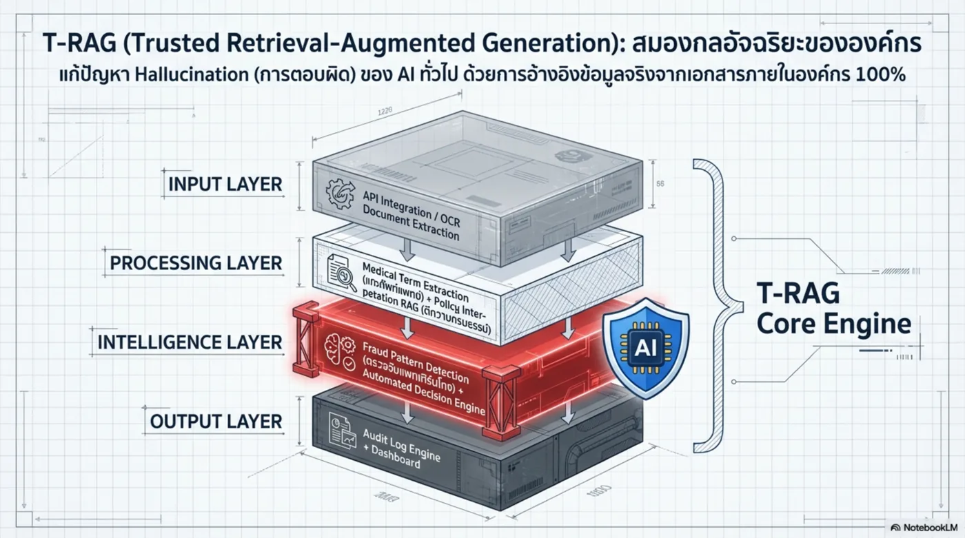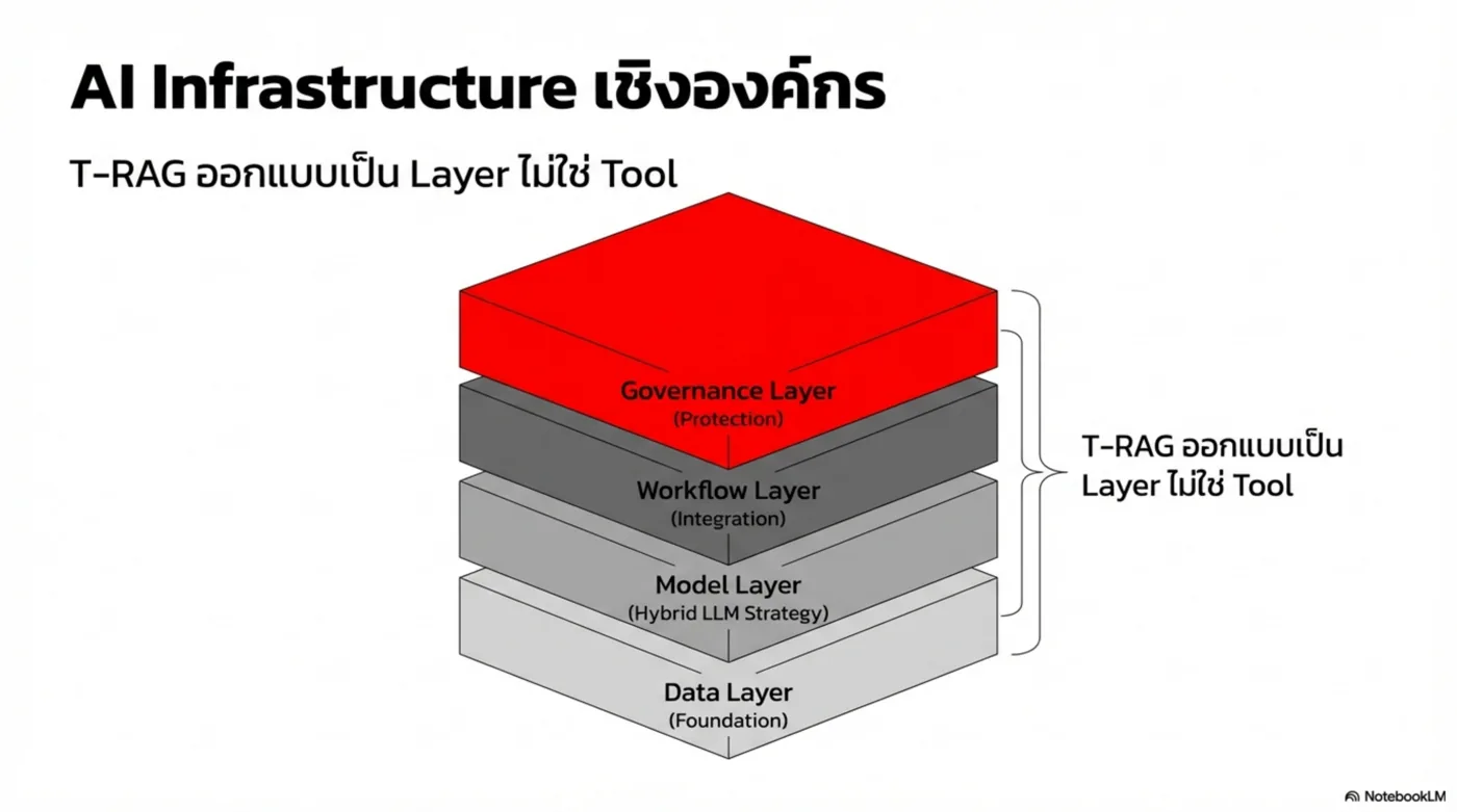 T-RAG Enterprise AI Infrastructure คือแพลตฟอร์มที่ทำให้องค์กร “เชื่อมความรู้–เข้าใจเอกสาร–ตัดสินใจได้” แบบองค์กรจริง: มี Governance, Auditability, และตัวเลือกติดตั้ง (On-Prem / Private Cloud / Cloud) ตามนโยบายข้อมูล